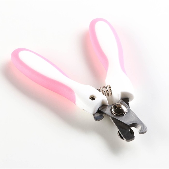 Ножницы-когтерезы с мягкими ручками, отверстие 8 мм, бело-розовые