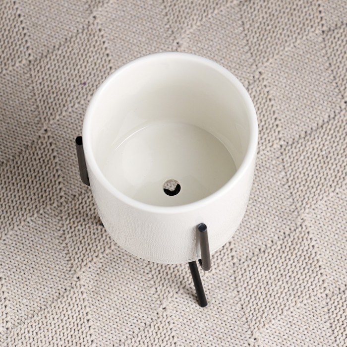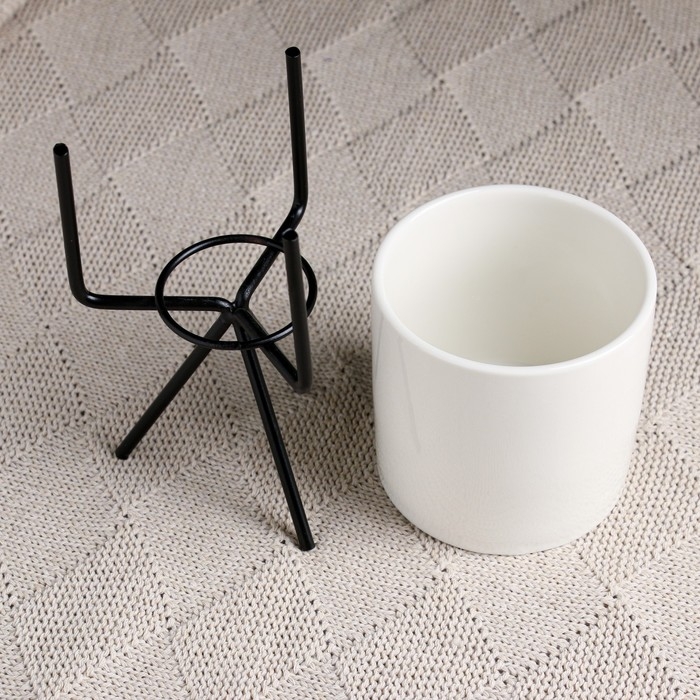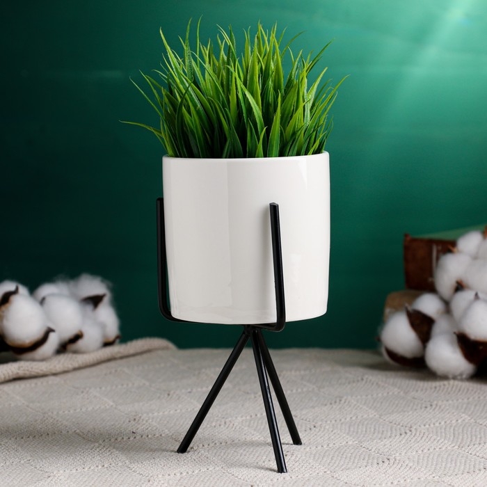 Кашпо "Цилиндр" белое, на черной подставке, 15х8х8см