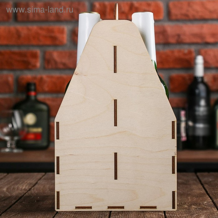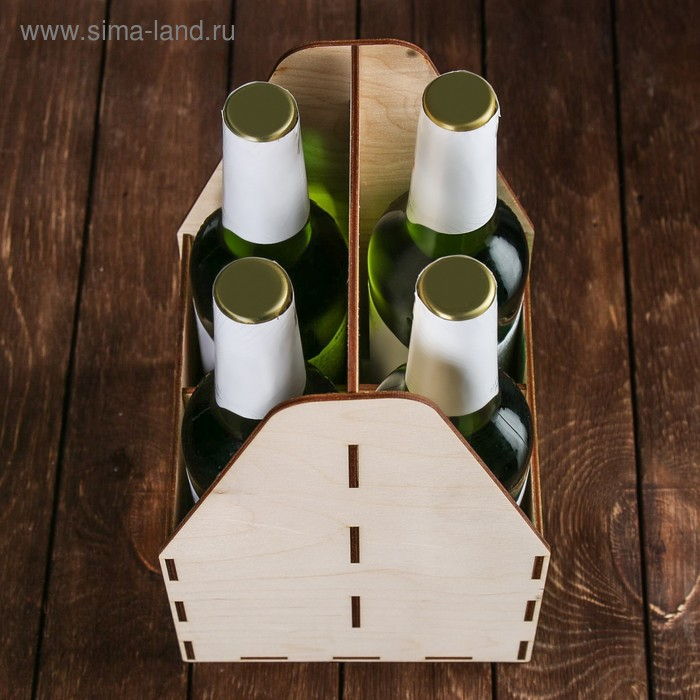 Ящик для пива 19×18×30 см с открывашкой, под 4 бутылки, деревянный