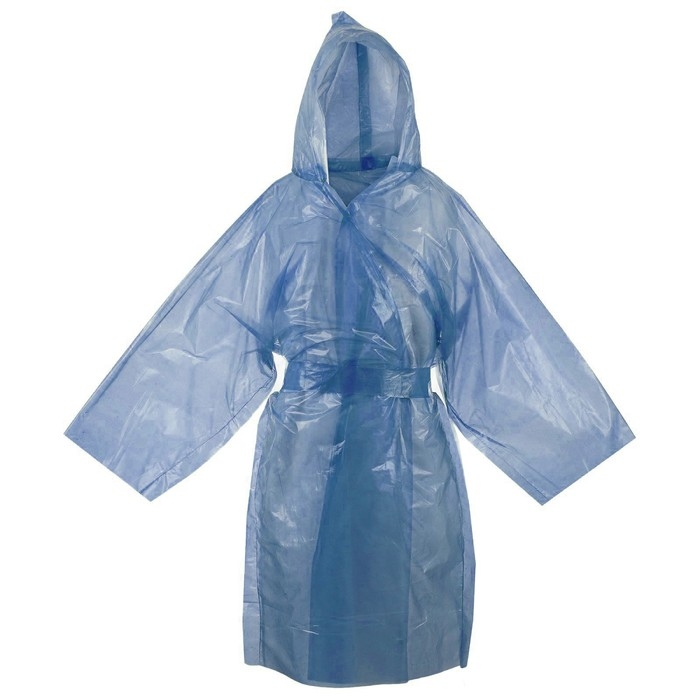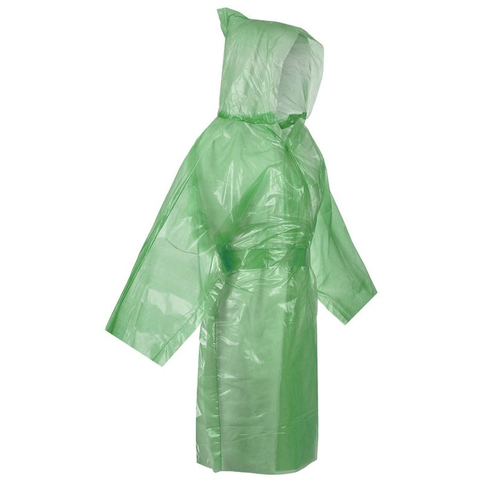 Многоразовый плащ-дождевик сделан из прочного и эластичного материала – ПВХ, при механическом воздействии материал в первую очередь тянется, поэтому он не порвётся при первой носке. При небольшой толщине и весе, дождевик надёжно защищает от влаги и ветра.