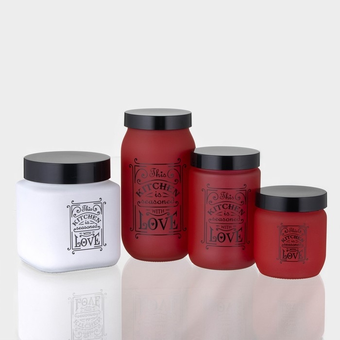 Банка стеклянная для сыпучих продуктов «Любовь на кухне», 1 л, цвет красный
