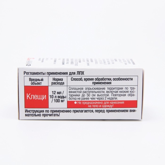 Назначение: средство для уничтожения на приусадебных, дачных и садовых участках (в природных биотипах) - иксодовых клещей. В жилых и бытовых помещениях - тараканов, постельных клопов, блох, муравьев, мух.