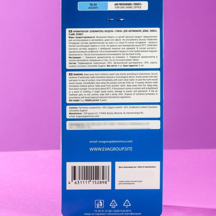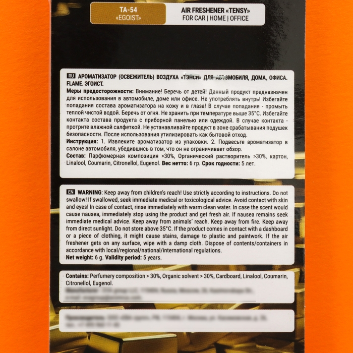 Ароматизатор подвесной Tensy Flame, Эгоист TA-54