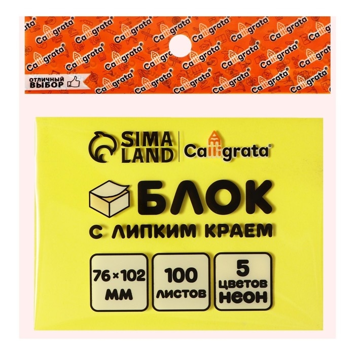 Блок с липким краем 76 мм х 102 мм, 100 листов, флуоресцентные, 5 цветов