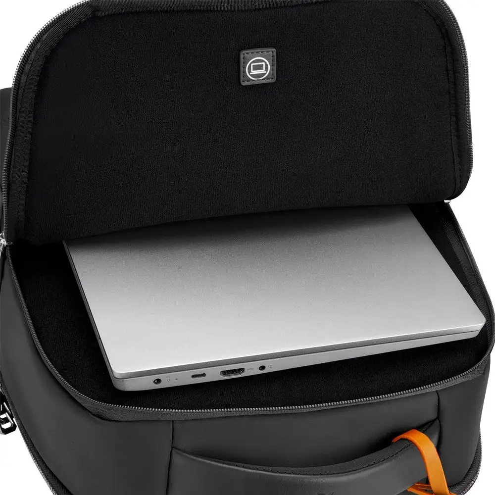 Рюкзак изготовлен из качественных материалов и продуман до мельчайших деталей — от отделения для компьютера, покрытого устойчивой к царапинам тканью, а также удобных карманов для планшета и смартфона, до специальных мест для компьютерной мыши, блока питания и других мелких, но важных предметов.