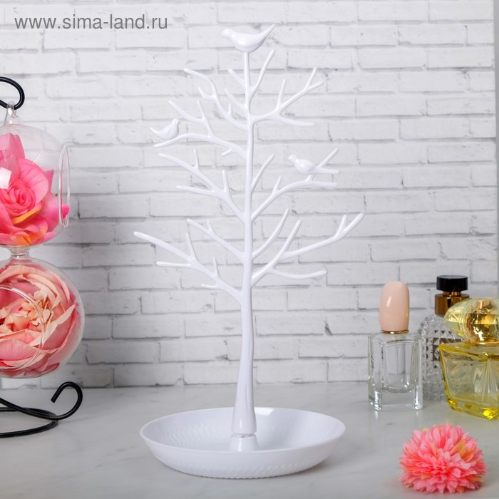 Подставка для украшений «Птички на дереве», 15,5×15,5×32 см, цвет белый