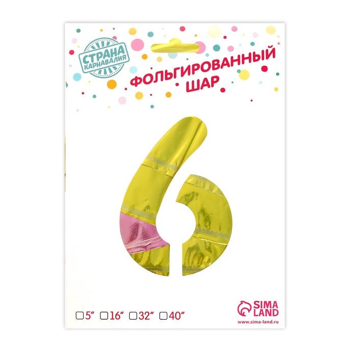 Шар фольгированный 40" «Цифра 6», на подставке, градиент