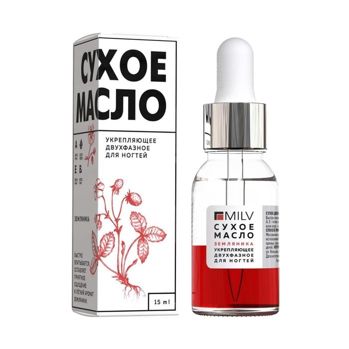 Сухое масло для ногтей Milv «Земляника», двухфазное, 15 мл