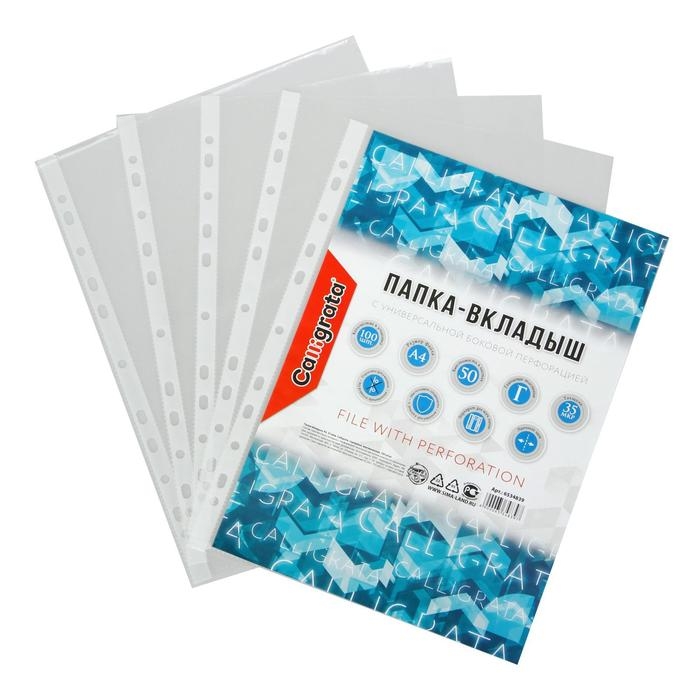 Файл-вкладыш А4, 35 мкм, Calligrata, глянцевый, вертикальный, 100 штук