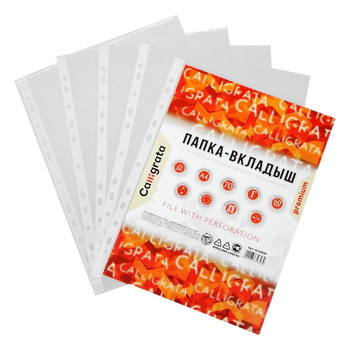 Файл-вкладыш А4, 60 мкм, Calligrata, плотные, глянцевый, вертикальный, 25 штук