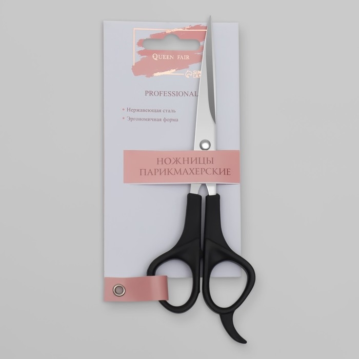 Ножницы парикмахерские с упором, лезвие — 6 см, цвет чёрный/серебристый