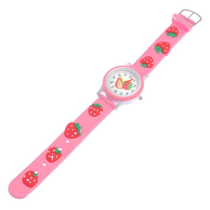 Часы наручные кварцевые детские "Земляника", d-3 см, ремешок 20 см