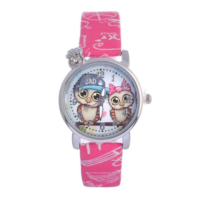 Часы наручные кварцевые детские "Совушки", d-3 см, ремешок 21 см
