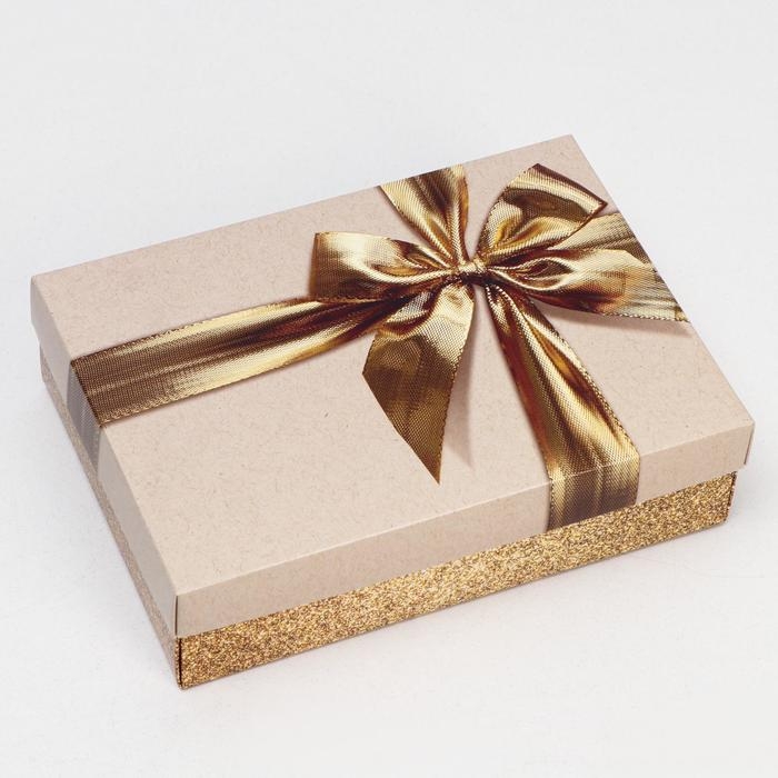 Коробка подарочная «Бант», золотая, 21 х 15 х 5 см