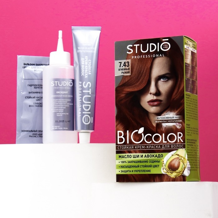 Стойкая крем краска для волос Studio Professional 7.43 Огненно-рыжий, 50 мл
