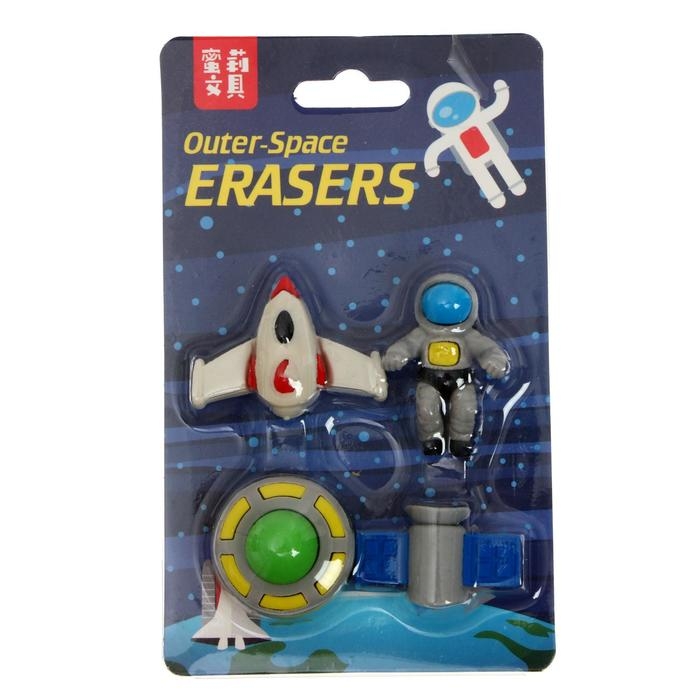 Фигурные ластики выполнены в форме космических персонажей, что позволяет превратить процесс стирания в игру. Подходят для удаления надписей, сделанных чернографитными карандашами.
