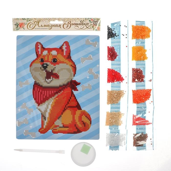 Алмазная мозаика с частичным заполнением для детей «Пушистая собачка», 20 х 25 см