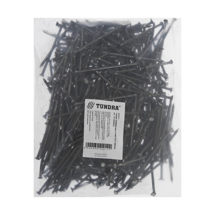 Гвозди ТУНДРА, строительные, ГОСТ 4028-63, без покрытия, 2,5х60 мм, фасовка 1 кг