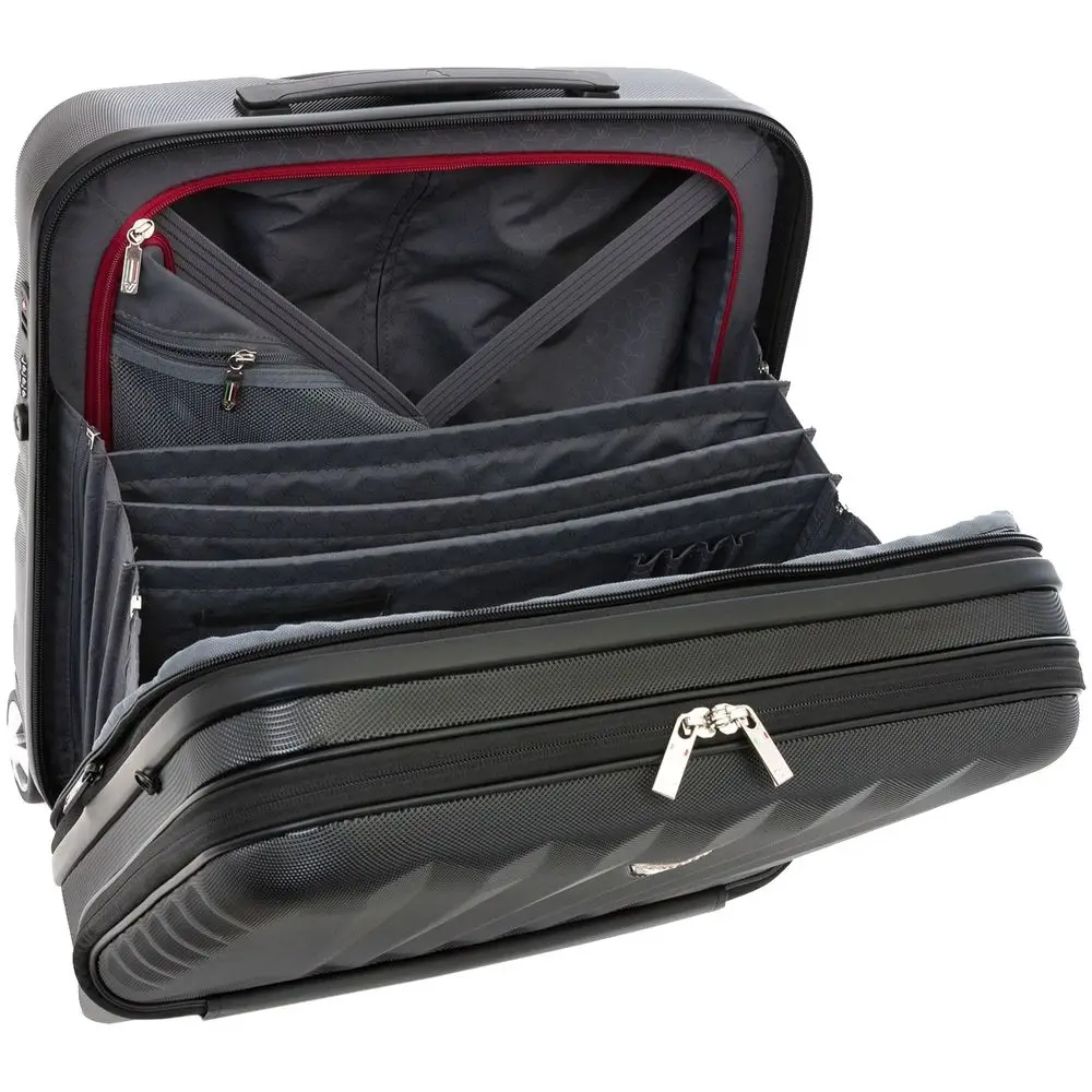 Изделие прослужит долго и сохранит первозданный вид, поскольку изготовлено из прочного поликарбоната Makrolon: поверхность имеет ребристую фактуру, препятствующую появлению царапин. Вместительный и небольшой мобильный офис можно брать в салон самолета в качестве ручной клади —все важные документы и гаджеты всегда будут под рукой.