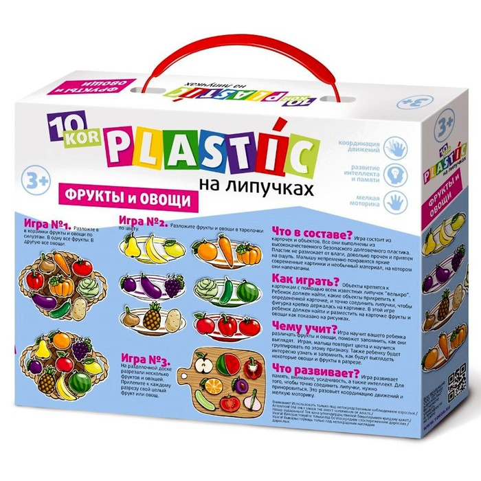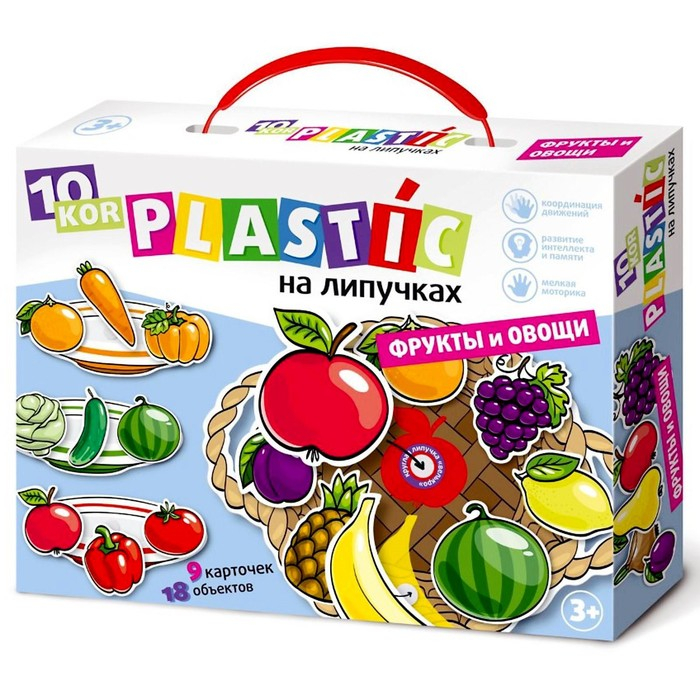 Игра на липучках «Фрукты и овощи» рекомендована для детей от 3 лет.