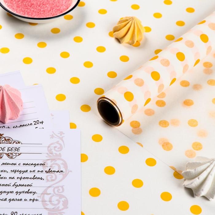 Бумага силиконизированная «Горох», желтый, для выпечки, 0,38 х 5 м