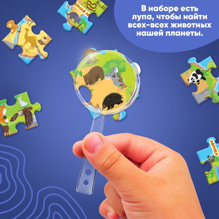 Пазлы «Найди и покажи: Животные нашей планеты», с лупой, 88 деталей