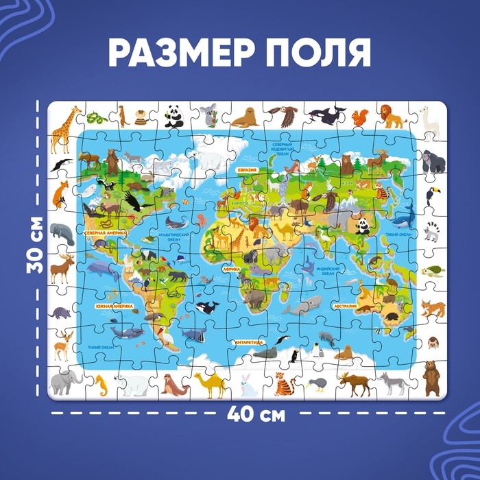 Пазлы «Найди и покажи. Животные нашей планеты» познакомят малыша с удивительным и разнообразным миром фауны. Ребёнок соберёт пазл, найдёт с помощью лупы всех животных, и узнает, кто из зверей живёт только в жарких странах, а какие животные обитают в самых суровых условиях.