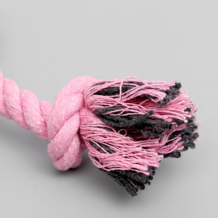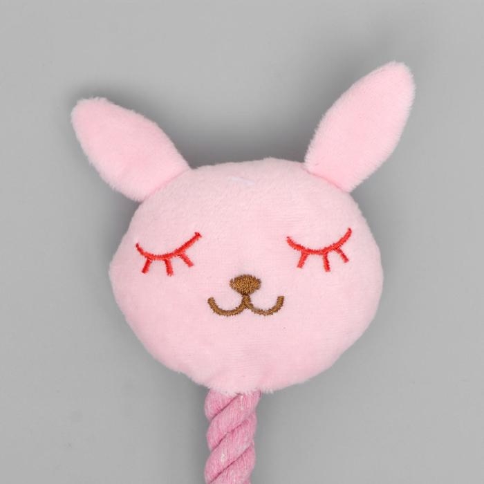 Игрушка мягкая для собак "Зайка с канатом", с пищалкой, 18 см, розовая