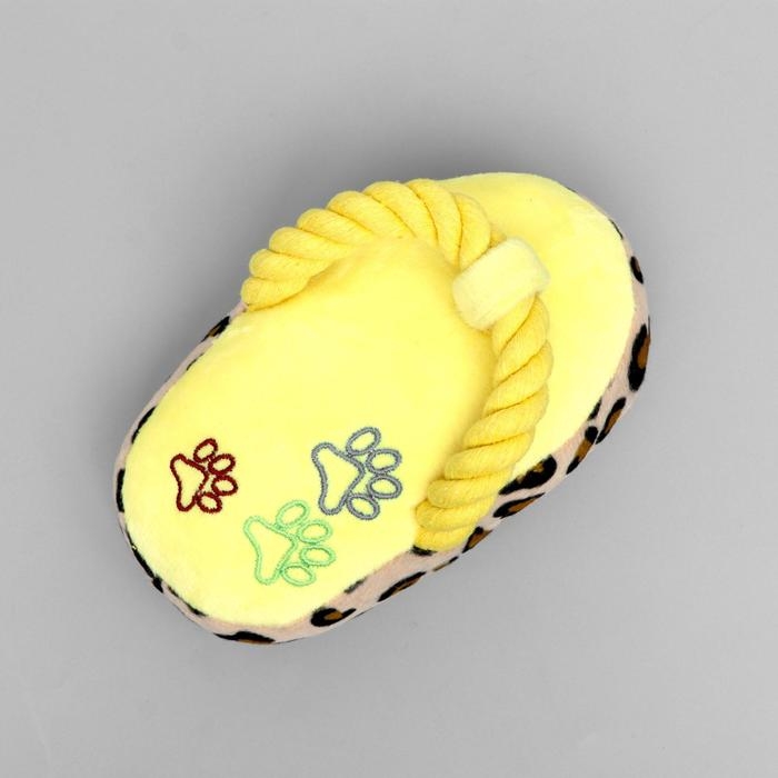 Игрушка мягкая для собак "Тапок с канатом", с пищалкой, 15 см, жёлтая