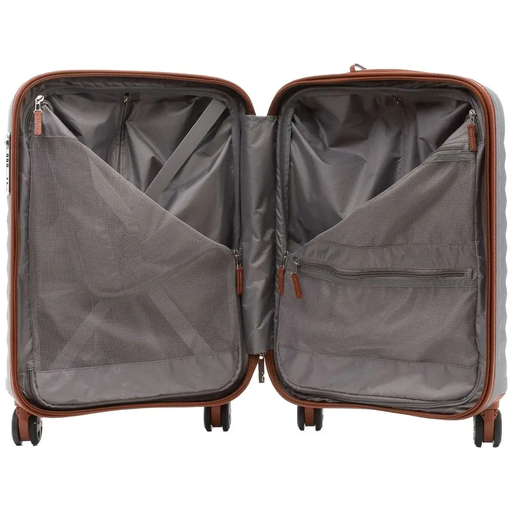 Наружные и внутренние элементы — ручки, фурнитура, обрамление молний и адресная бирка — выполнены из натуральной кожи, благодаря чему чемодан E-Lite приобретает по-настоящему изысканный вид.