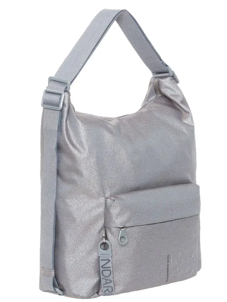 Сумка-рюкзак выполнена из уникального полиэстера Mitrix, поверхность которого обладает интересным 3D-эффектом. В материал вплетены мерцающие металлические нити: они придают ткани максимальную прочность и неповторимый радужный внешний вид.