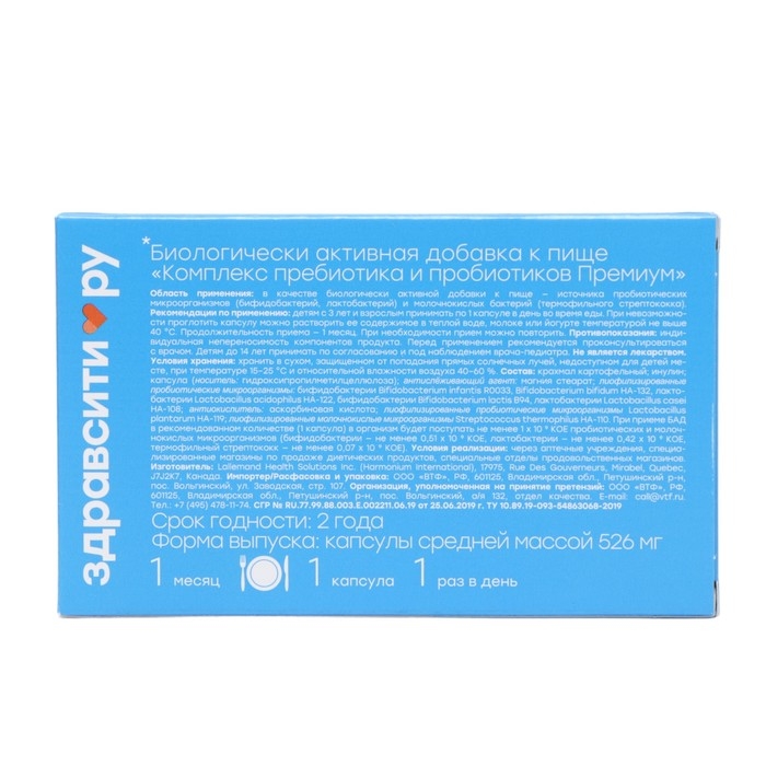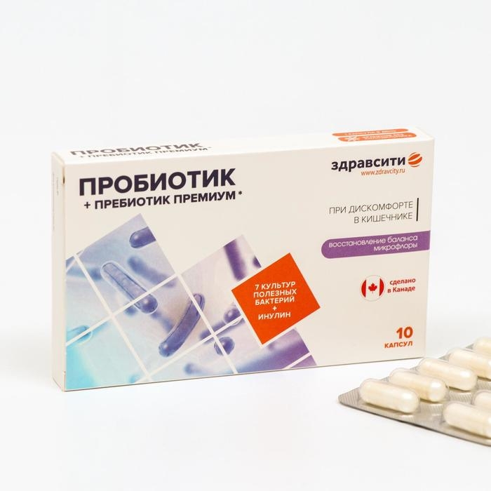 Комплекс пребиотика и пробиотиков Здравсити премиум, 10 капсул по 526 мг
