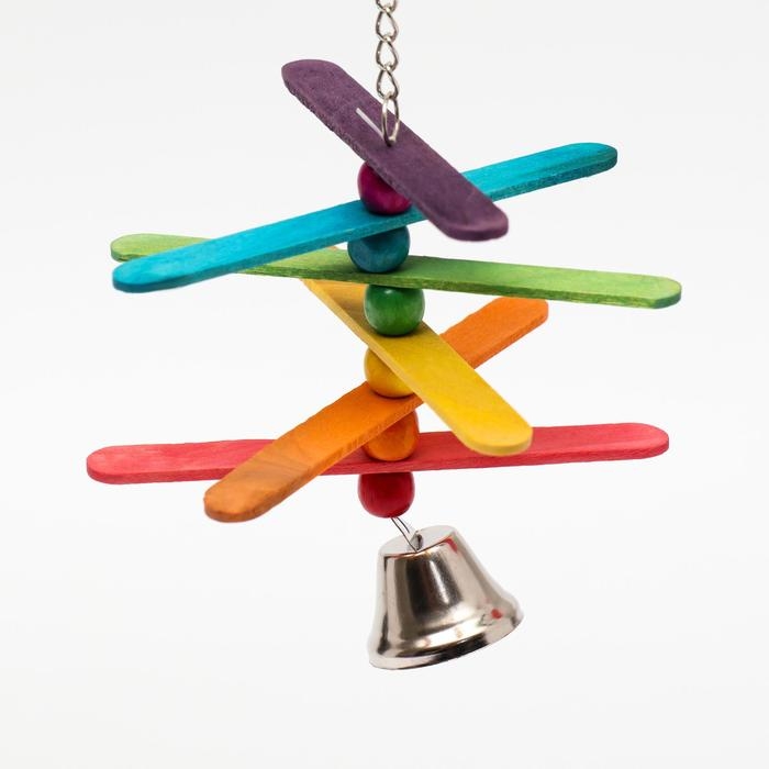 Игрушка - лучшее развлечение и элемент физического развития вашего пернатого друга. Эта игрушка отлично подойдет для домашних животных. Висит на клетке, удобно для них играть и жевать. Привлекательный и забавный, креативный, колокольчик издаст звук и привлечет их внимание.