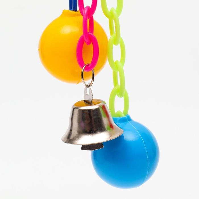 Игрушка для птиц Погремушка, микс. Игрушки 100% не токсичны и безопасны для жевания и грызения. Попугай очень активная птица, ему просто необходимо обеспечить интересное времяпрепровождение, особенно в отсутствии хозяина. А красочный и яркий дизайн привлечет внимание вашего питомца и избавит от скуки.