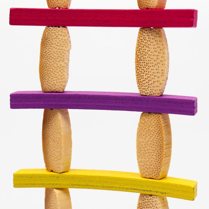 Игрушка для птиц Лесенка, микс . Игрушки 100% не токсичны и безопасны для жевания и грызения. Попугай очень активная птица, ему просто необходимо обеспечить интересное времяпрепровождение, особенно в отсутствии хозяина. А красочный и яркий дизайн привлечет внимание вашего питомца и избавит от скуки.
