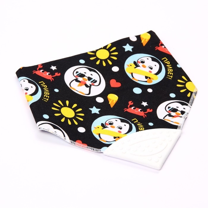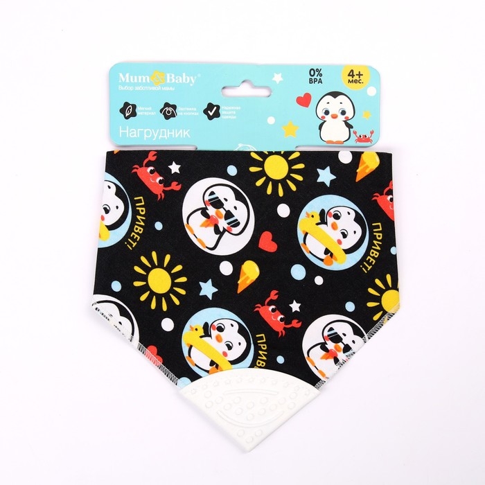 Нагрудник-бандана/слюнявчик для кормления «ТРЕНД, Прингвин» непромокаемый с прорезывателем, на кнопке