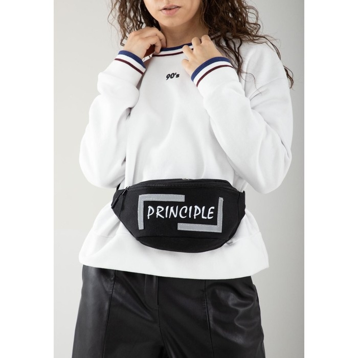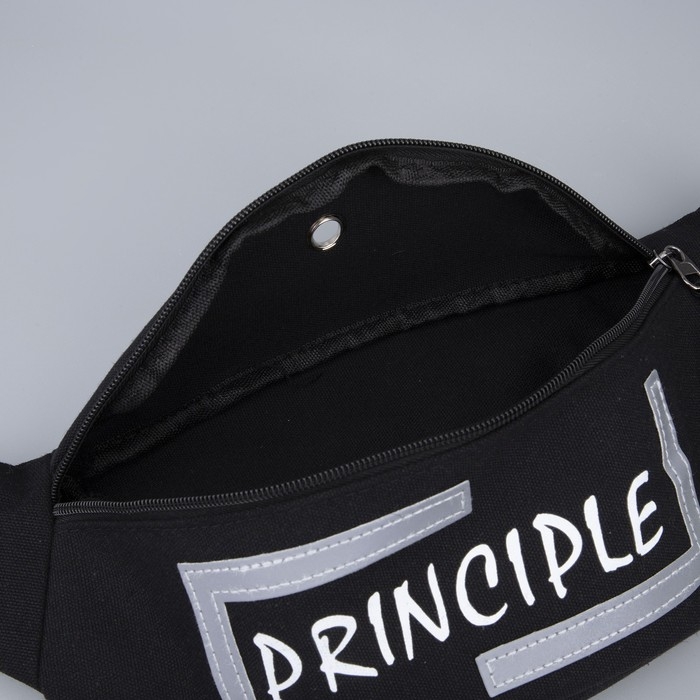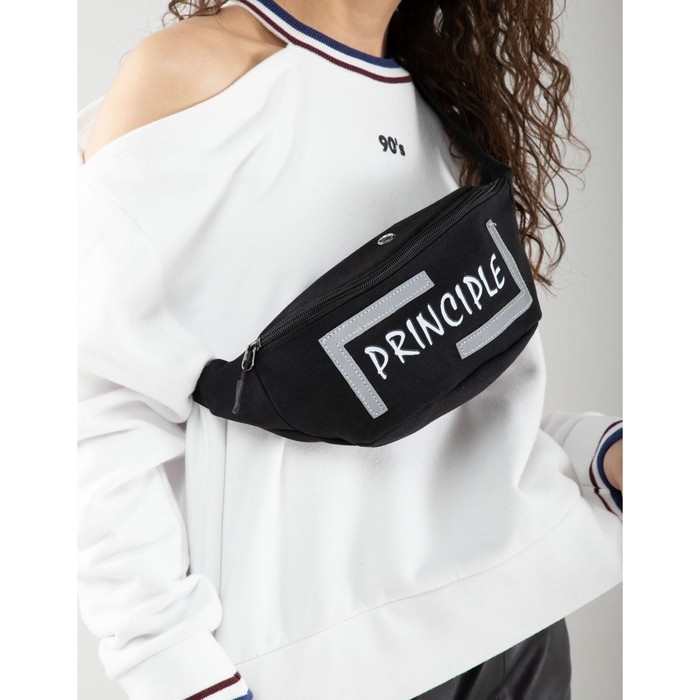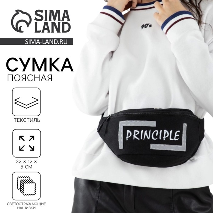 Сумка поясная, текстильная PRINCIPE, 35 х 12 х 5 см, светоотр. нашивки, отд на молнии, чёрная