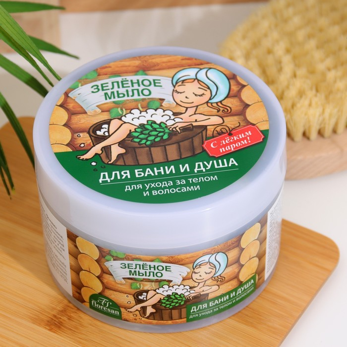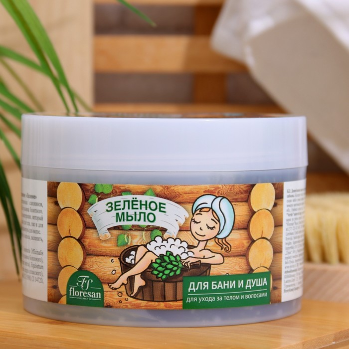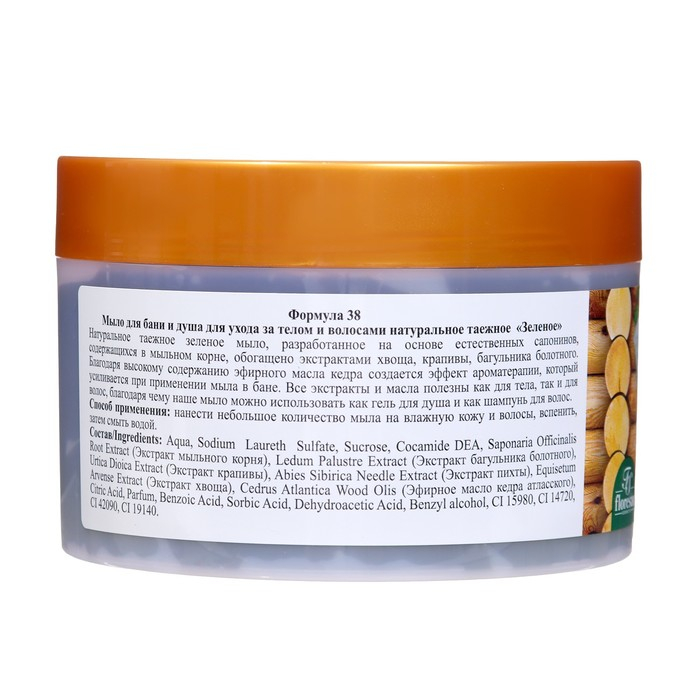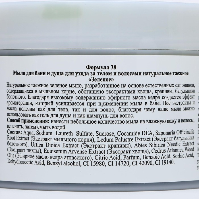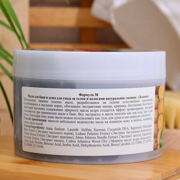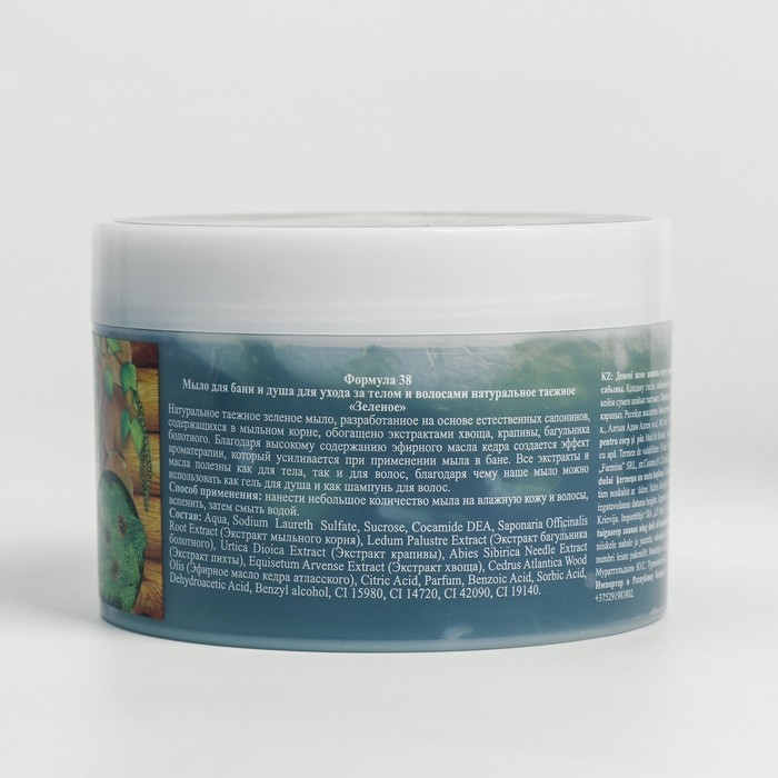 Мыло для бани и душа, для ухода за телом и волосами натуральное таежное "Зеленое" 450 мл