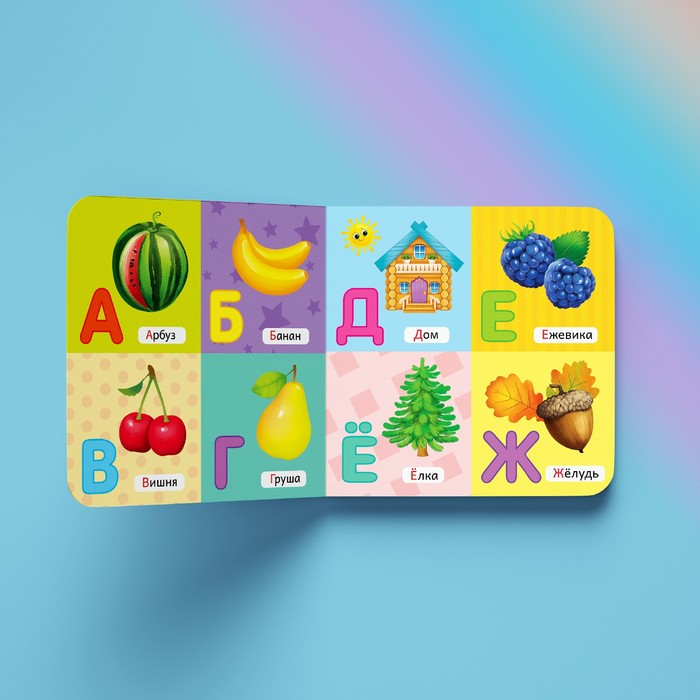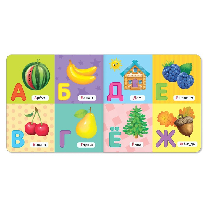 Малыш с удовольствием будет рассматривать яркие картинки, учиться сравнивать предметы, запоминать цвета и знакомиться с буквами.