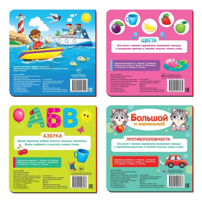 Книги картонные развивающие, набор 4 шт., по 10 стр.