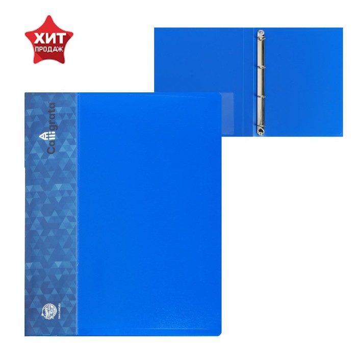 Папка на 4 кольцах А4, Calligrata, 25 мм, 700 мкм, внутренний и торцевой карман, синяя