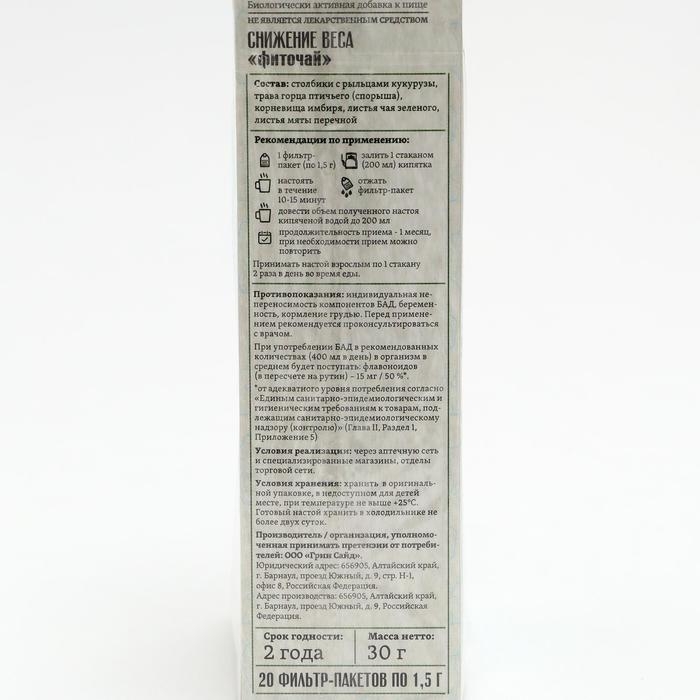 Фитосбор снижение веса, 20 фильтр пакетов по 1.5 г