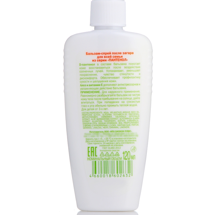 Защита средство от солнца - лёгкий, нежирный, прекрасно впитывающийся пантенол спрей после загара быстро и эффективно охлаждает и смягчает кожу после воздействия солнечных лучей, возвращает чувство комфорта, придает ей гладкость и бархатистость. Тонизирует, устраняет неприятные ощущения после загара. Высокий процент пантенола, масла ши и подсолнуха, экстракты череды и ромашки помогают коже восстановиться, уменьшают покраснение, чувство стянутости и дискомфорта, увлажняют, устраняют сухость и шелушение. Не содержит спирт, некомедогенен. Бальзам легко впитывается, не оставляет жирных следов на одежде. Экономичен в использовании. Уходовая косметика женская, мужская и для детей от 3 лет.
