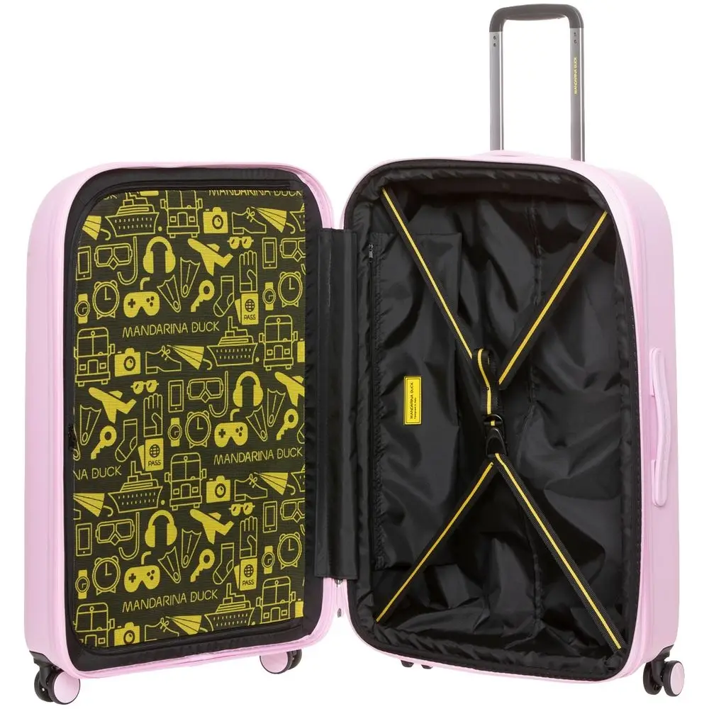 Коллекция чемоданов из поликарбоната Logoduck+ стала настоящим бестселлером: обтекаемые изящные формы, колеса в тон корпуса, крупный логотип бренда, подкладка с принтом и яркие цвета делают их уникальными в своем роде. Упаковочные ремни, разделитель на молнии и дополнительный карман для мелочей помогут аккуратно упаковать все необходимые вещи для длительного отпуска или семейной поездки.