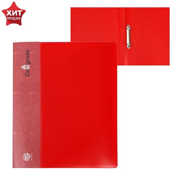 Папка на 2 кольцах А4, Calligrata, 40 мм, 700 мкм, карман на торце, красная