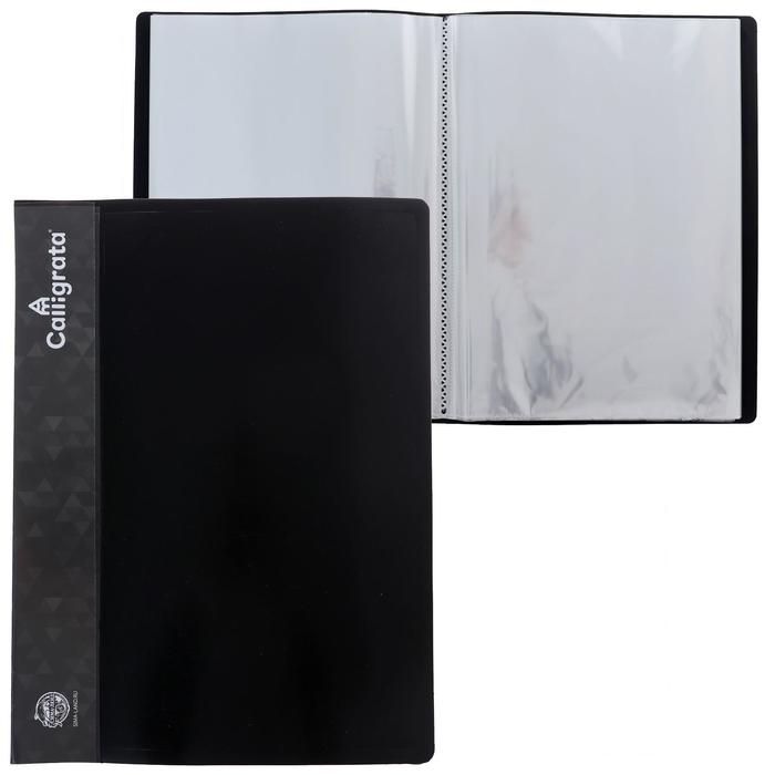 Папка с 40 вкладышами А4, 500 мкм, Calligrata, карман на корешке, чёрная