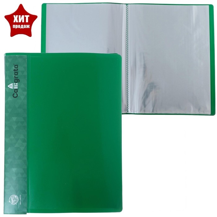 Папка с 60 вкладышами А4, 500 мкм, Calligrata, карман на корешке, зелёная