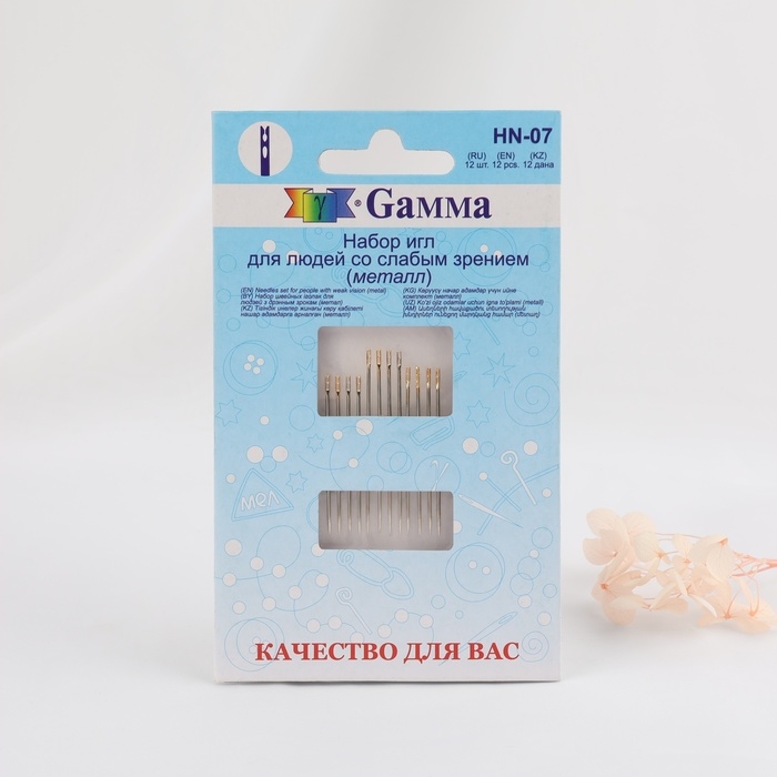 Иглы швейные, с золотым ушком, самовдеваемые, 12 шт, HN-07