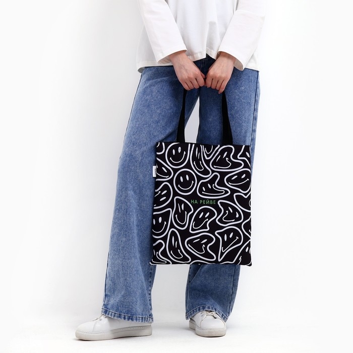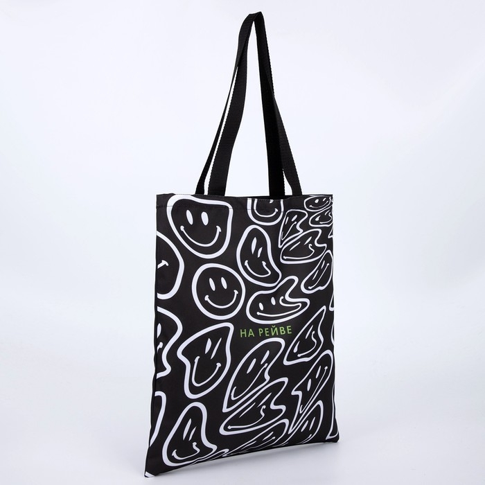 Шопер На рейве без молнии, без подклада, цвет чёрный