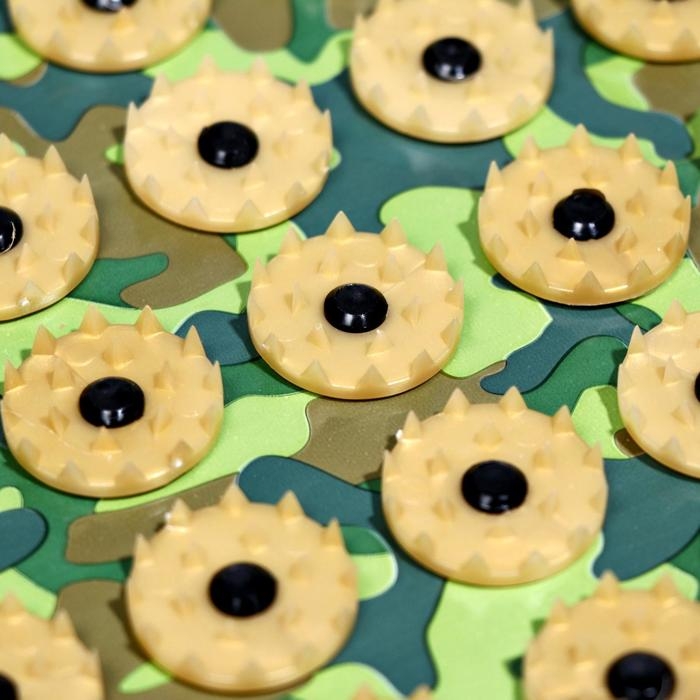 круглые изделия с иглами изготовлены из нетоксичной пластмассы и закреплены специальными кнопками.